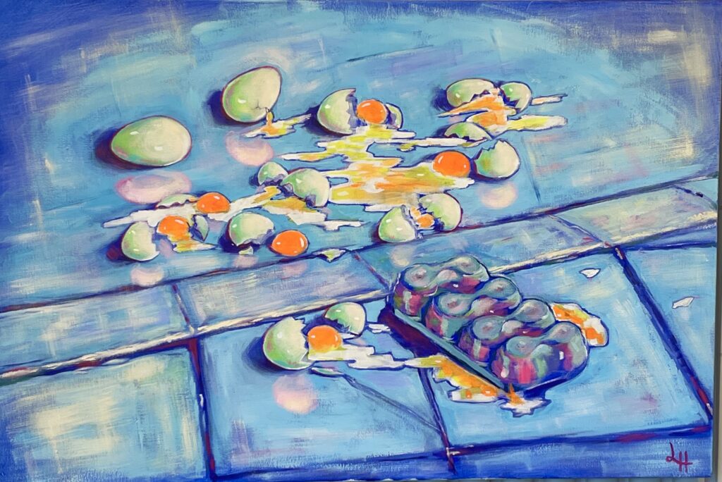 My works depict items semi-realistically but either the setting or the colours are somehow odd. My objective is to show the absurdity of our surroundings, yet I want the viewer to believe that the scene does truly exist. Whether I paint weirdly coloured eggs or the seeds of a canna lily, I want the viewer to think ‘I see it but I don’t quite understand it.’