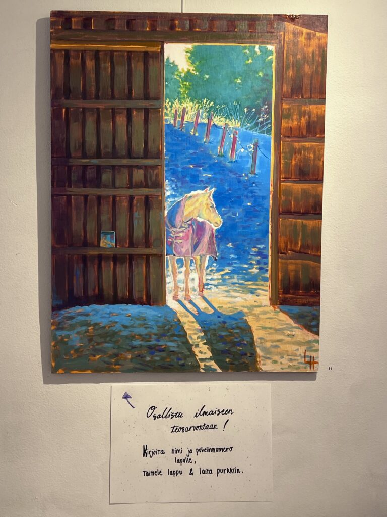 Hevonen on ollut kesytettynä jo 5500 vuotta. Ajan myötä hevosten ympärille on rakentunut kiehtova kulttuuri, joka on innoittanut tätä näyttelyä. Esillä ja myynnissä on kaikenlaisia ja kaikenkokoisia teoksia. Paikan päällä voi myös osallistua ilmaiseen teosarvontaan. Tervetuloa!